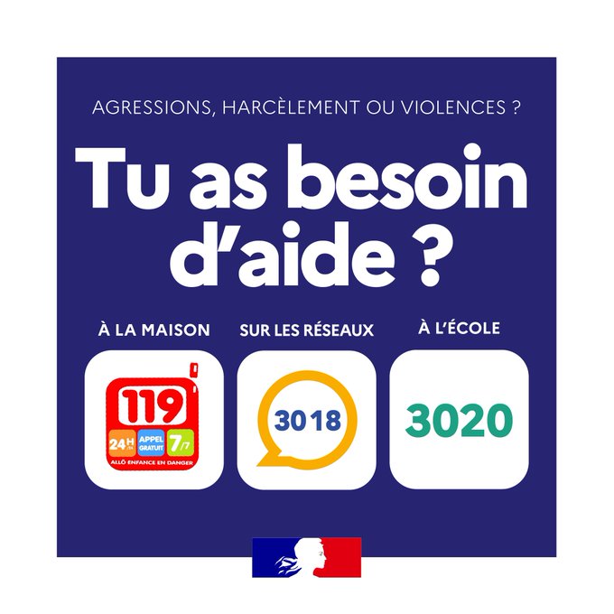 VICTIME DE HARCELEMENT, DE VIOLENCE, D'AGRESSION ? 3 numéros pour réagir !